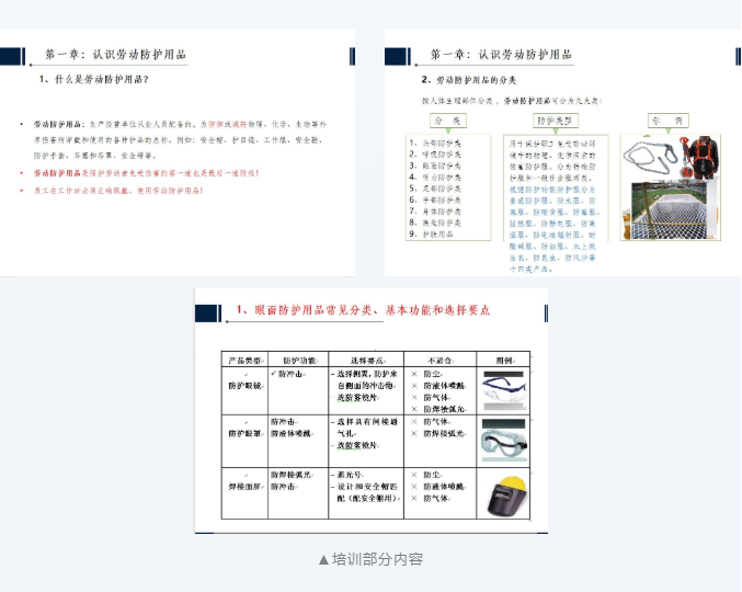 本次培訓(xùn)采用PPT課件的方式授課,結(jié)合生產(chǎn)現(xiàn)場特點,從勞動防護(hù)用品的類別、作用、使用方法、注意事項等方面介入,形象生動地圍繞安全帽、耳塞、防護(hù)手套、安全鞋等常用勞保用品的正確使用方法進(jìn)行講解示范,讓大家更加直觀地學(xué)習(xí)我們工作中常用的各類防護(hù)用品的正確用法,懂得掌握勞動防護(hù)用品專業(yè)知識的重要作用。