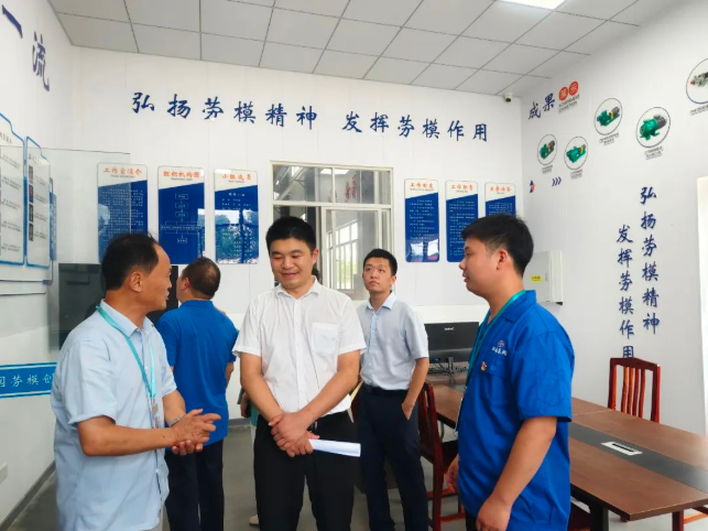 期間調(diào)研組與公司工程師、全國五一勞動獎?wù)芦@得者邱軍強(qiáng)進(jìn)行交談,參觀了公司勞模創(chuàng)新工作室,對工作室在深化校企合作方面的作用表示肯定。