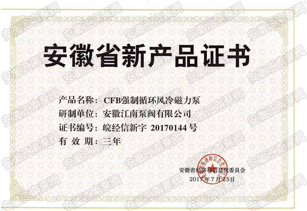 安徽江南泵閥有限公司榮獲CFB強(qiáng)制循環(huán)風(fēng)冷磁力泵新產(chǎn)品證書(shū),主營(yíng):氟塑料泵,不銹鋼泵,耐腐蝕化工泵,品質(zhì)卓越,行業(yè)領(lǐng)跑企業(yè),科研生產(chǎn)型企業(yè)20年鑄就行業(yè)輝煌!...